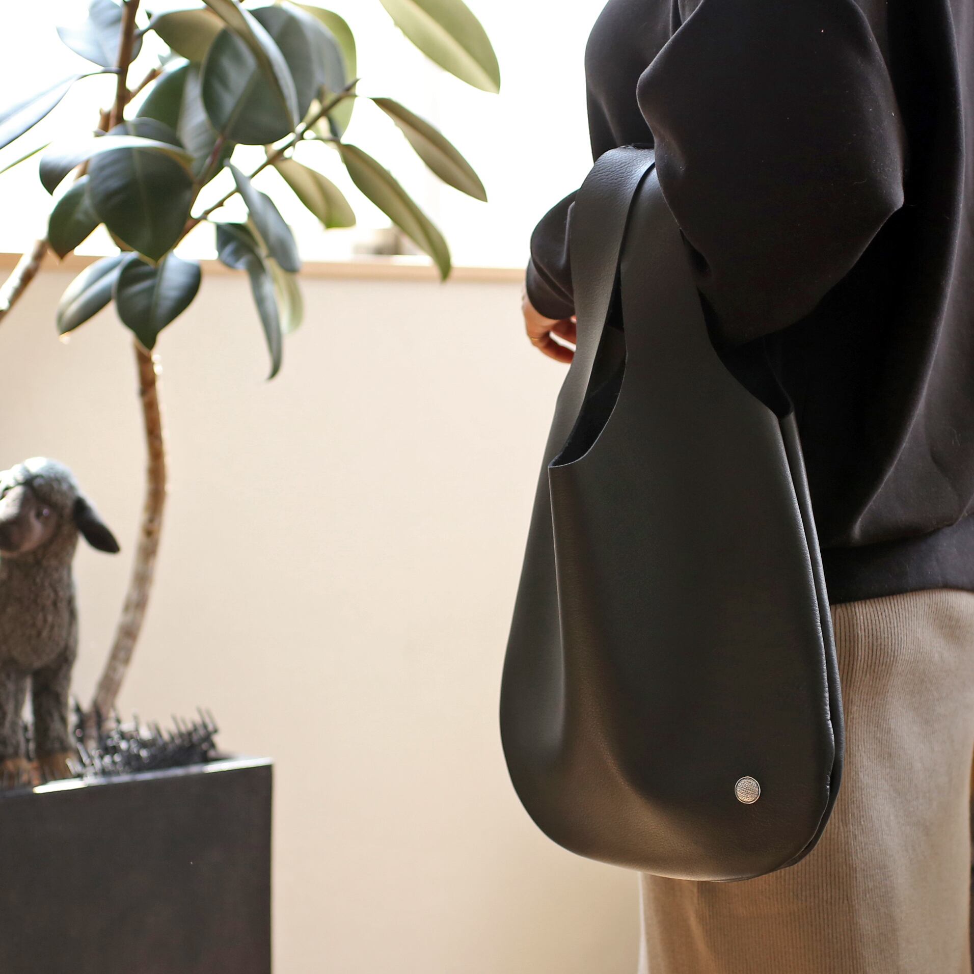 いつ、どのようなスタイルでもさっと持つだけで決まるシンプルなトートバック。